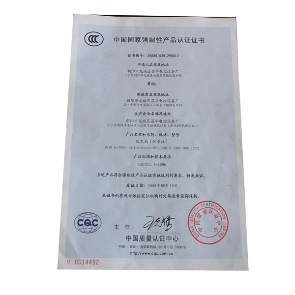 中國(guó)國(guó)家強(qiáng)制性產(chǎn)品認(rèn)證證書